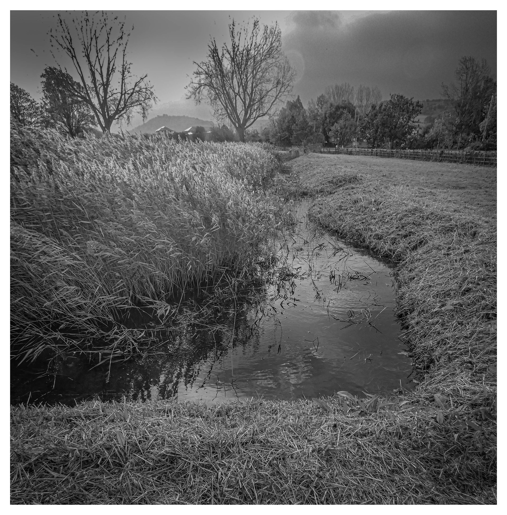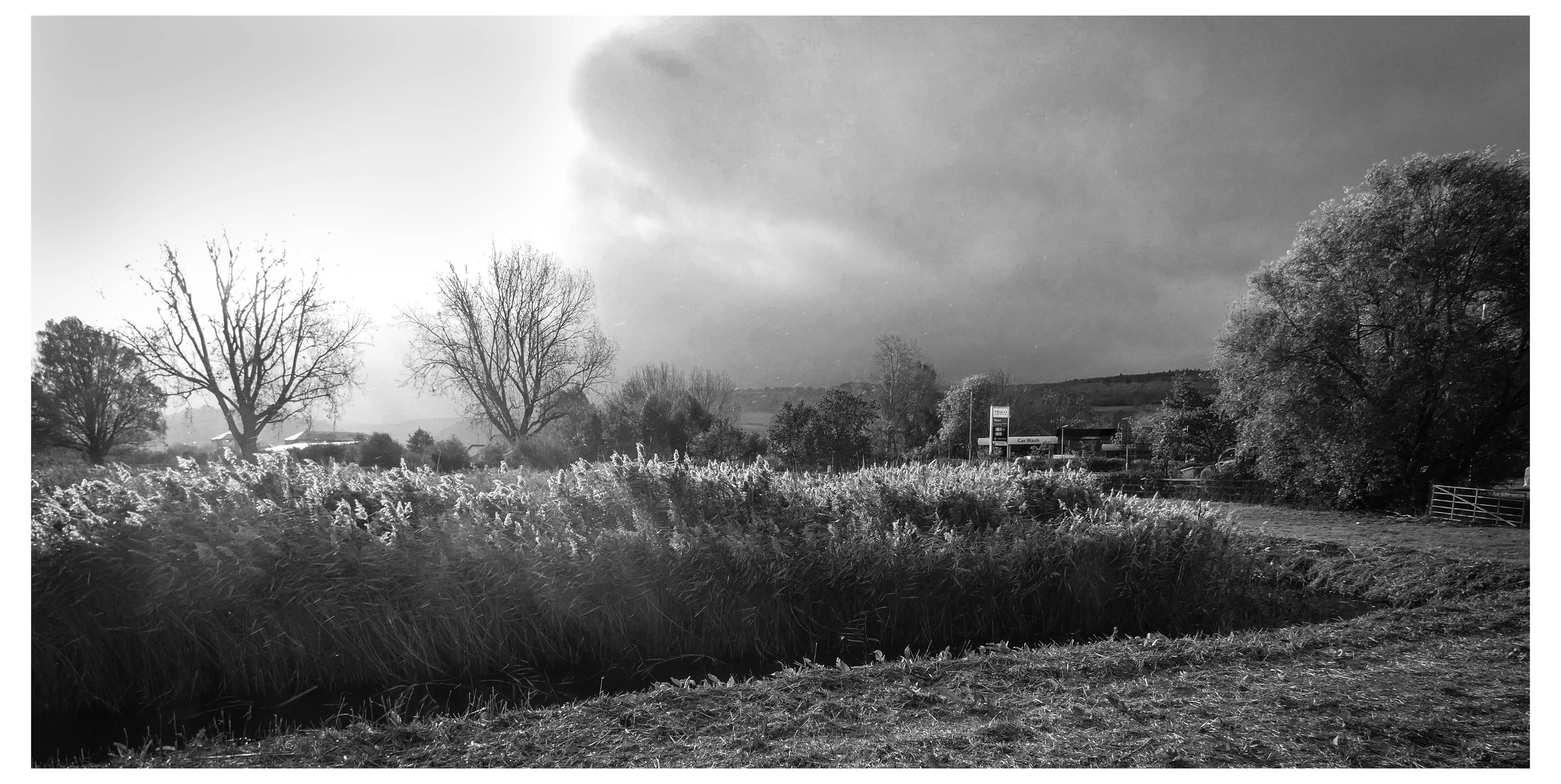 A brooding sky, both dark and bright,